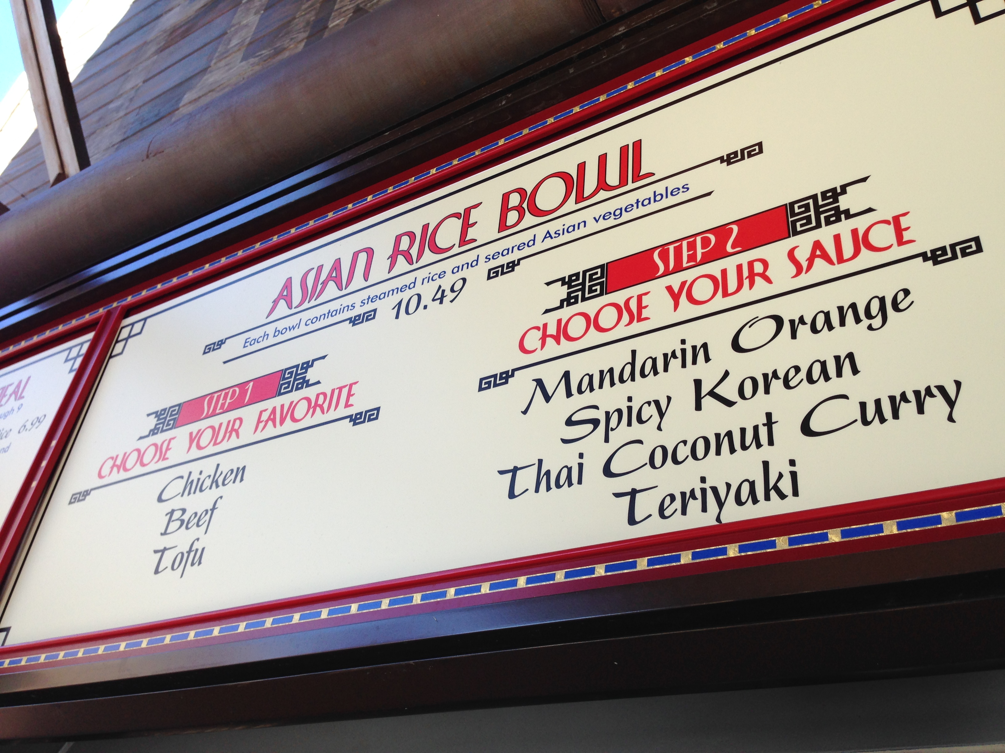 Fortune says: You will find filling rice bowls at Lucky Fortune Cookery. Well, they don’t actually say that, but you do get a fortune cookie with every meal ordered at this counter service restaurant that specializes in Asian-style rice bowls. The nice thing is that they have great combinations of flavors at this eatery so you can be sure to find something you like. Whether it’s the fruity flavor of mandarin oranges (where they put ACTUAL mandarin oranges in your bowl), the hot flavors of the Spicy Korean sauce (although the heat tastes more like Sriracha which can best be described as American Asian), the sweet yet tangy taste of teriyaki, or the taste of Thai Coconut Curry, you can have what you want on your choice of meat. There are three to choose from – chicken, beef, and for the non-meat eating crowd – tofu! No one is left out at this place.