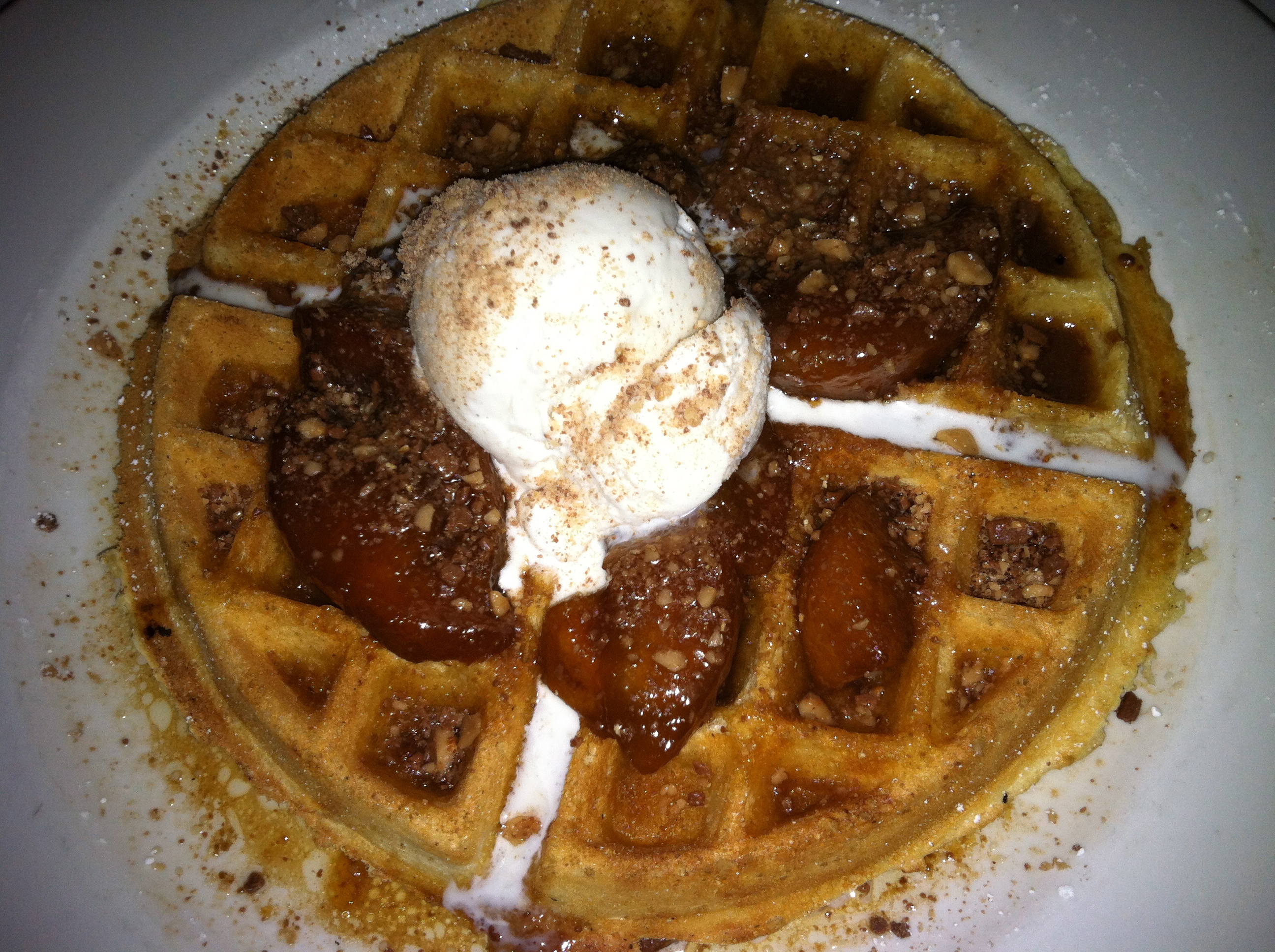 Prices are on the high side with appetizers ranging from $8 to $14 (although I ordered Fried Green Tomatoes on the side for $6 which would have served as an excellent appetizer). The average dish is in the mid-twenties. But if you’re looking for quality, you definitely get what you pay for. The taste is excellent and besides a rather lackluster Caesar salad, everyone at our table had a terrific meal. The menu does change from time-to-time and I was disappointed that one of my favorite desserts, the Peaches and Cream was gone (a delectable waffle covered in peaches and peach syrup as well as bits of pecan topped with a grand scoop of vanilla bean ice cream). I was afraid I wouldn’t find a good substitute, but I should not have feared. Indeed there was a more than suitable replacement – Lemon Ice Box Pie. Yum.