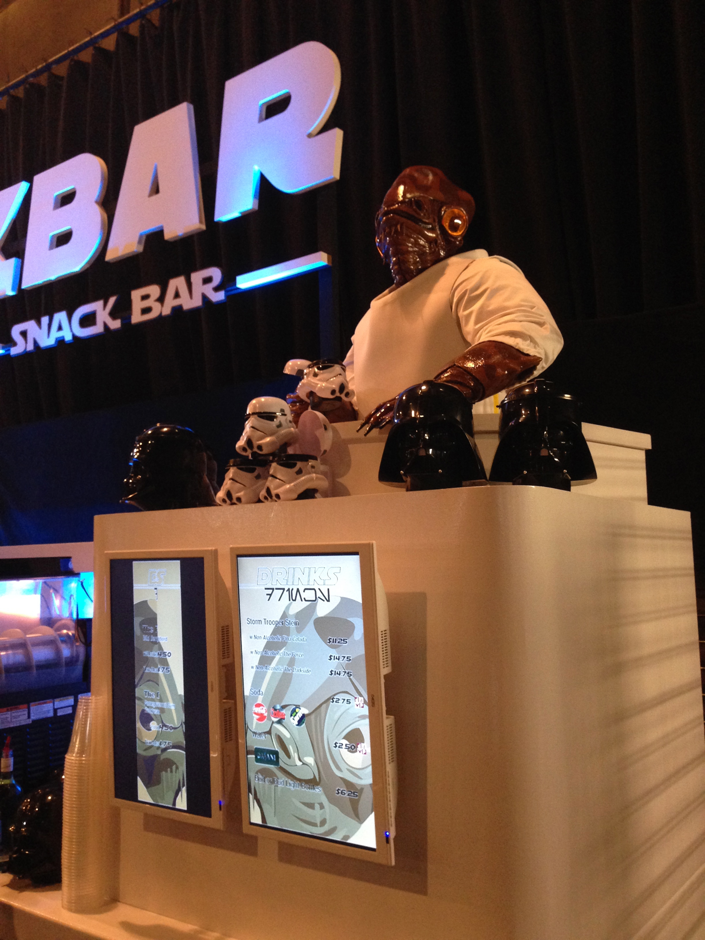 But that wasn’t all. There were many more perks to being a part of Rebel Rendezvous, such as an autograph session with Ashley Eckstein who played Ahsoka Tano from Star Wars: The Clone Wars and with some of the designers and artists of many of the pieces on display. Those in attendance also had early access to D-Tech Me where you could get your face scanned and an action figure would be made of YOU as Princess Leia, Luke in Rebel gear, a Stormtrooper, or Han frozen in carbonite. Personalized Star Wars iPhone cases were also available in eight different styles as well as two limited edition cases of only 300 each (unable to be personalized). A great addition to the festivities was Ackbar’s Snack Bar with Darth Vader popcorn carrying case, Stormtrooper stein with drink included (both non-alcoholic and mixed drinks), a Darth Vader peanut butter and chocolate cupcake and a new Yoda Nutella cupcake.