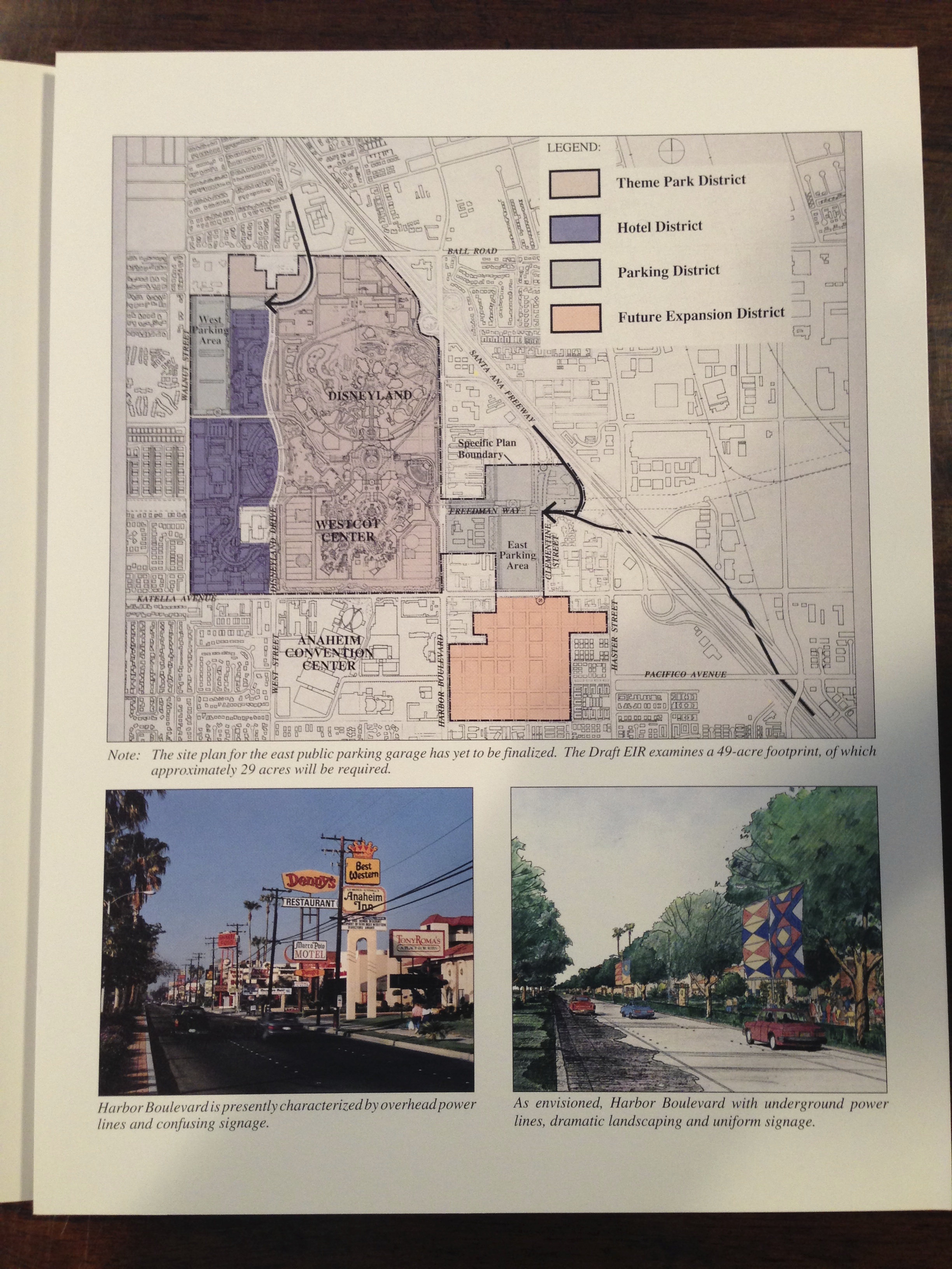 WESTCOT though never happened. Some of its ideas have been incorporated into the current resort. The way the ticket booths are set up and the central esplanade are exactly as they would have been if WESTCOT had become a reality. The way Tony Baxter talked about muffling the view and the sound while riding the Ride the Dragon attraction sounds a lot like how the sound mitigation tubes function on California Screamin’ today. There were two newer hotels on the property – Paradise Pier and Grand Californian and to some extent Grand Californian did have the concept of residing in the park, but not quite the way it was originally imagined. No good idea at Disney ever gets thrown out. It just takes shape in different ways. I still wonder how they planned to manage traffic for the Disneyland Bowl concept though…