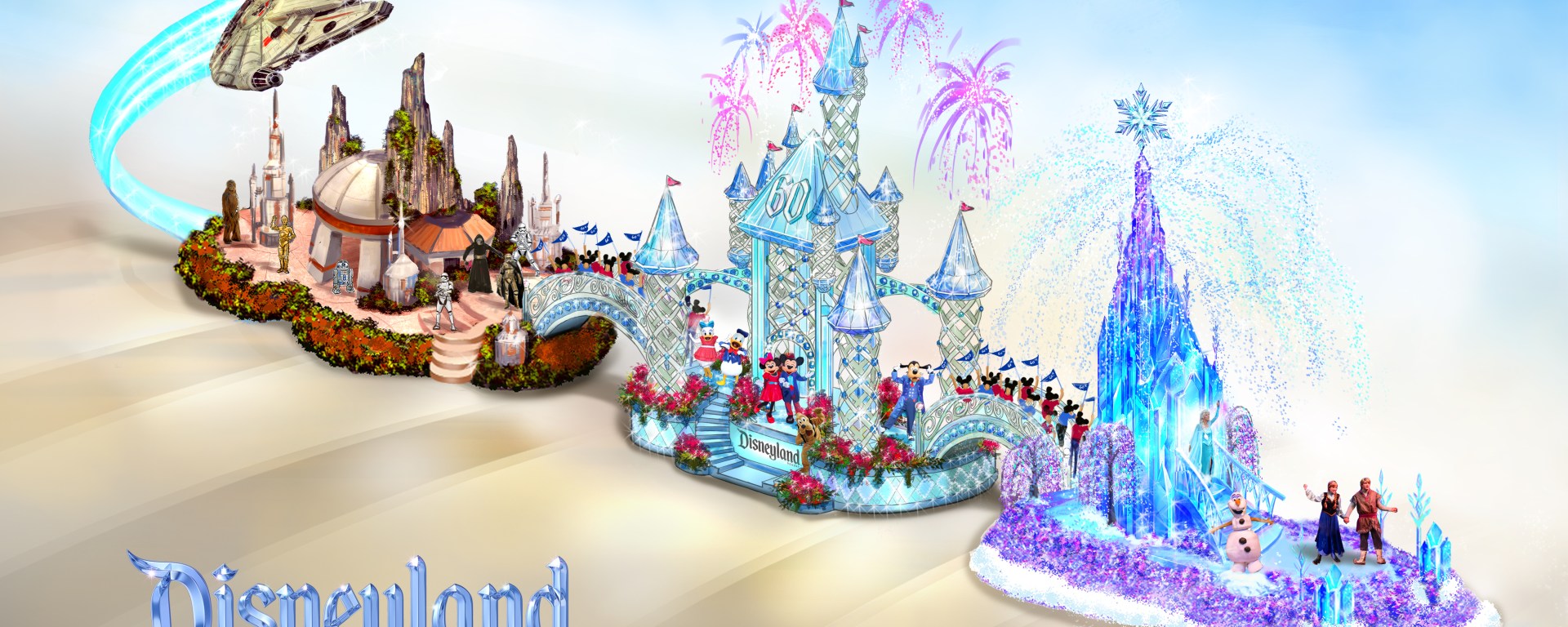 Disneyland and the Rose Parade have had a long history together and their paths intertwine again. This year, Disney will once again take part in the annual event in Pasadena, CA as Disneyland celebrates 60 years of making magic. With the theme “Find Your Adventure,” Disney has submitted a beautiful three-part float featuring the movie Frozen, Sleeping Beauty Castle, and Star Wars. With the release of The Force Awakens, the announcement this year of a new Star Wars-themed land, and the recent launch of Season of the Force at the parks, including the franchise seemed appropriate. And of course, there is nothing more iconic about Disneyland than the castle, but the inclusion of Frozen? Didn’t that come out in 2013?