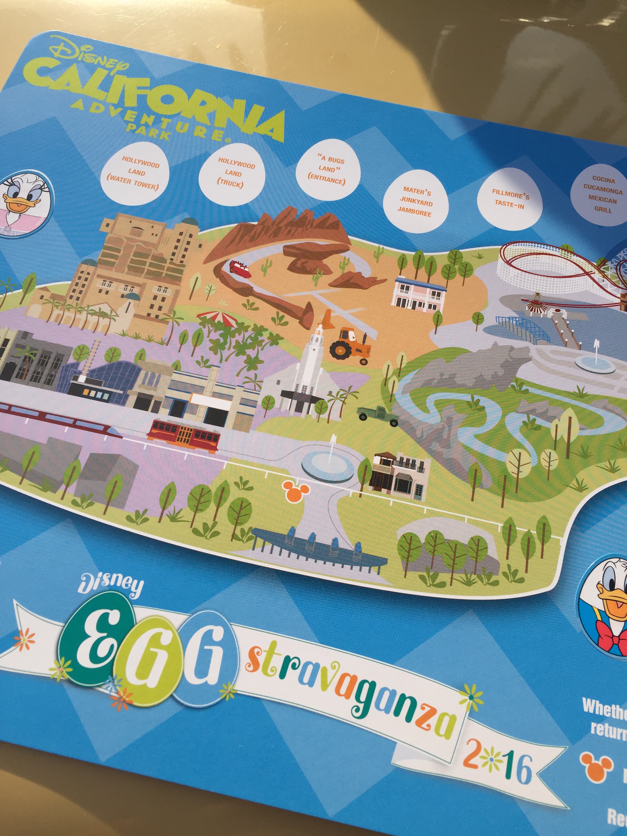 Although I was able to purchase a map from each location at the Disneyland resort, I actually hunted for the eggs in Disney California Adventure. Some were easy to find and some were pretty difficult. In fact, I couldn’t even find one of them but through process of elimination guessed which egg I was missing. Sometimes, the eggs are spot on exactly where you would think they would be and other times I had to ask a nice cast member for help. There are small clues to the location of the eggs printed on the map. If you’ve ever played car bingo, this is sort of like that. It’s something fun to do while walking around the park, but isn’t as involved as something like Sorcerers of the Magic Kingdom (in the park of the same name) or Midship Detective Agency on board the Disney Dream and Fantasy. Those are more like active scavenger hunts where you must go to each location to advance the game. Instead, the Eggstravaganza is casual fun for the whole family and at only $5.95 each makes for a great souvenir!