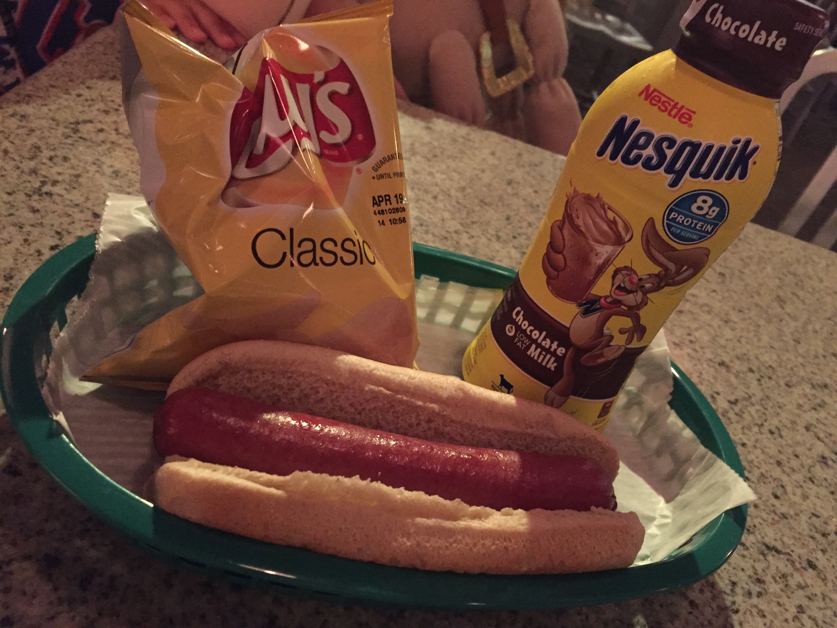 The menu is extremely simple. Basically there are five hot dogs to choose from: the classic plain hot dog, Chili Cheese Dog, Sicilian Dog, Barbeque Hot Link, and Vegetarian Portobello-Mushroom Philly Dog. All of them come with your choice of sliced apples or chips. The kids menu is simple – Kids Turkey Dog. They also have a Kids Power Pack with lots of healthy choices in it but its more like a big healthy snack than a meal. Their featured treat until March 18th celebrates Zootopia and are the Banana Corn Dogs. If I liked bananas, I would totally want to order these! They look so good. You get two mini banana corn dogs, sprinkled with powdered sugar and two dipping sauces – chocolate and red “paw-psicle” (raspberry).