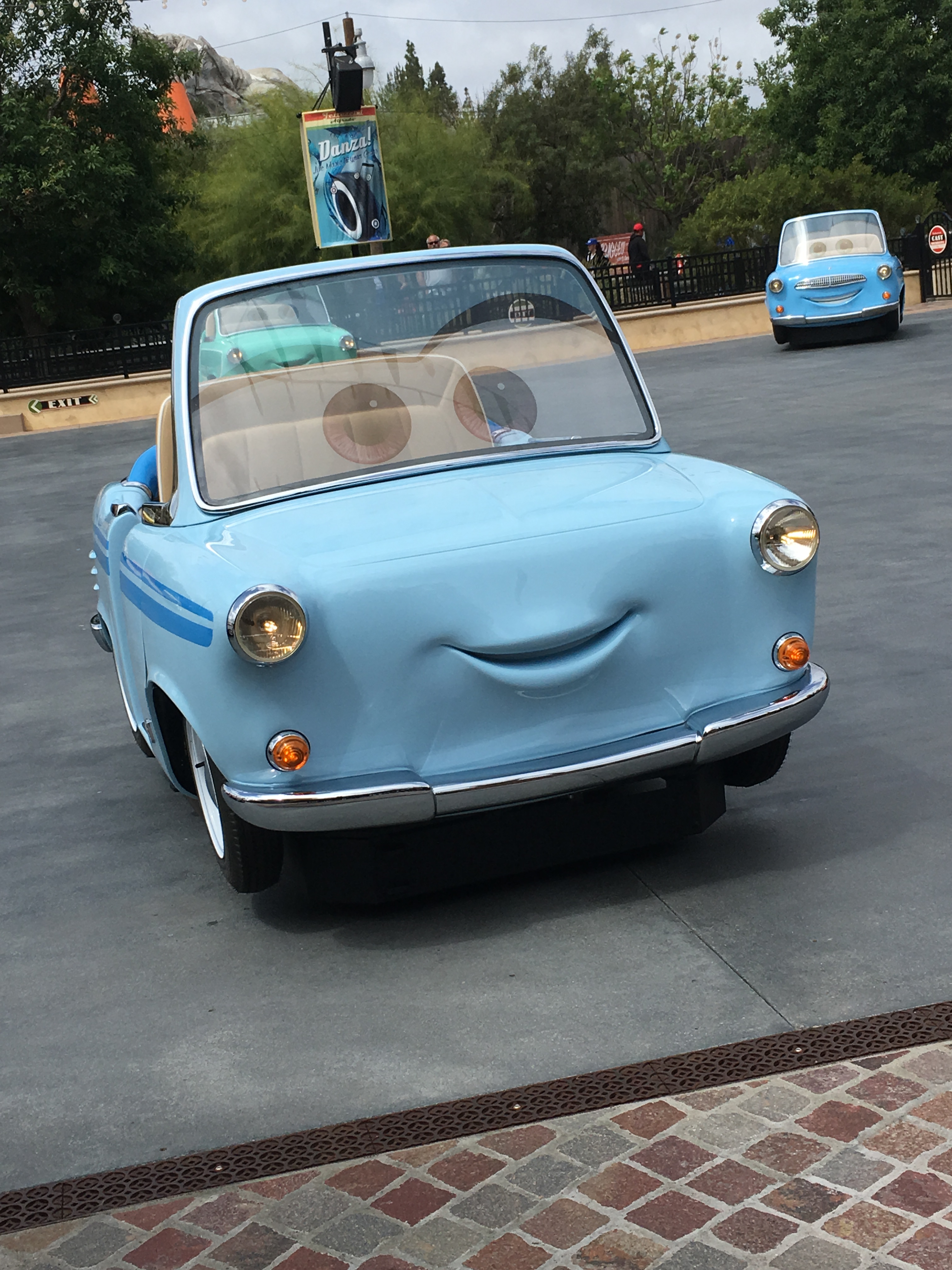 One of the very cute ride vehicles at Luigi's Rollickin' Roadsters