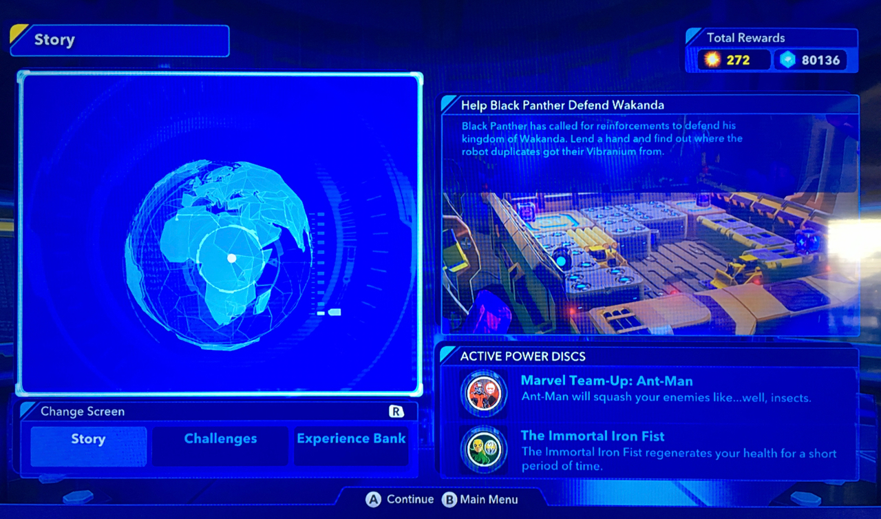 The second mode is the challenge mode. Challenge mode is a series of 28 battles, each with a different scenario and win condition. Each time you master one you gain experience and tokens to help you out. If you play with specific characters you also unlock items and alternate character costumes. Collecting all of the special items requires using virtually every Marvel character for Disney Infinity, but you can complete the challenges without any other character than Cap.