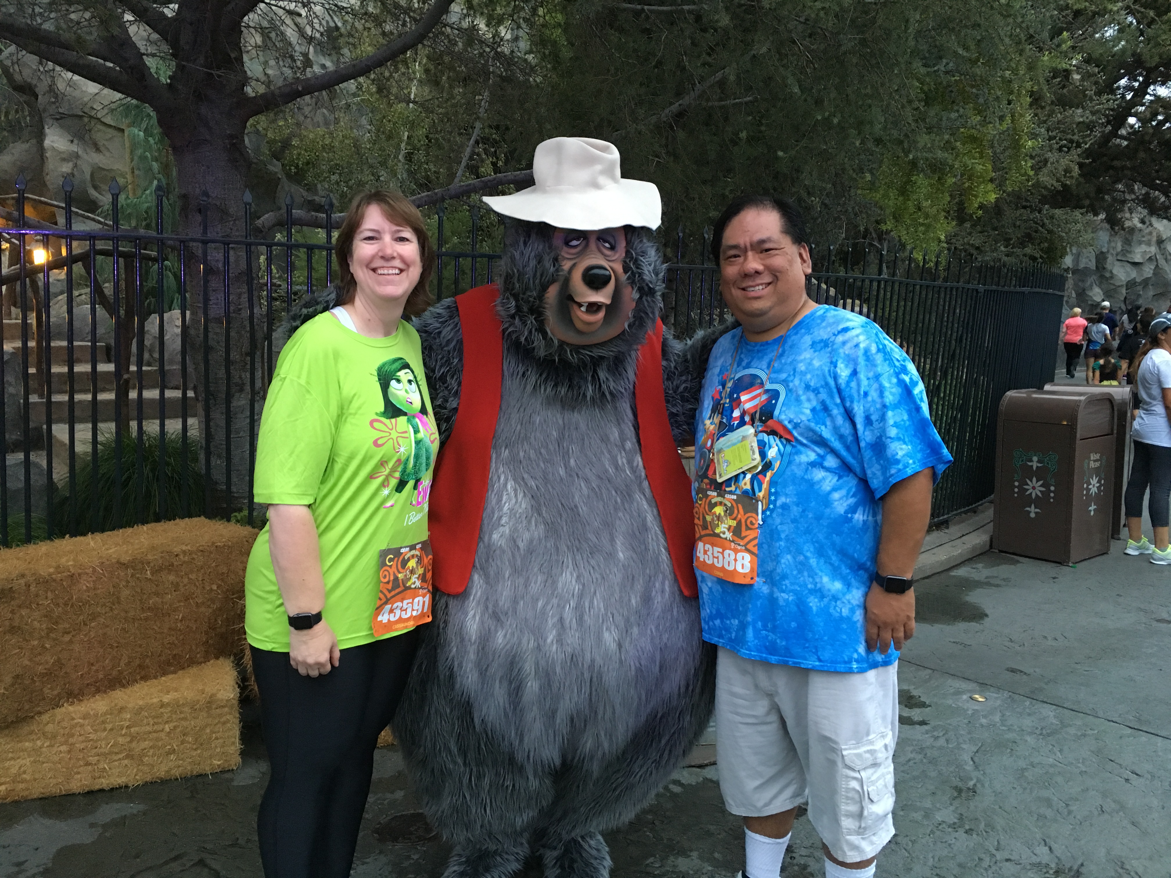 The entire race was great fun. Lots of people dressed up in costume. Some of them quite inventive like the pair we saw dressed up as broomsticks from Fantasia! Others had creative Disney bounding runners outfits like the Cheshire Cat. And of course there were a few dressed up as famous Disney bears – including Henry and Trixie from the Country Bear Jamboree. Families came out to race together including quite a few more kids than I saw last year. There were friends racing together, mothers and daughters, and some like me and my wife, Cassie.