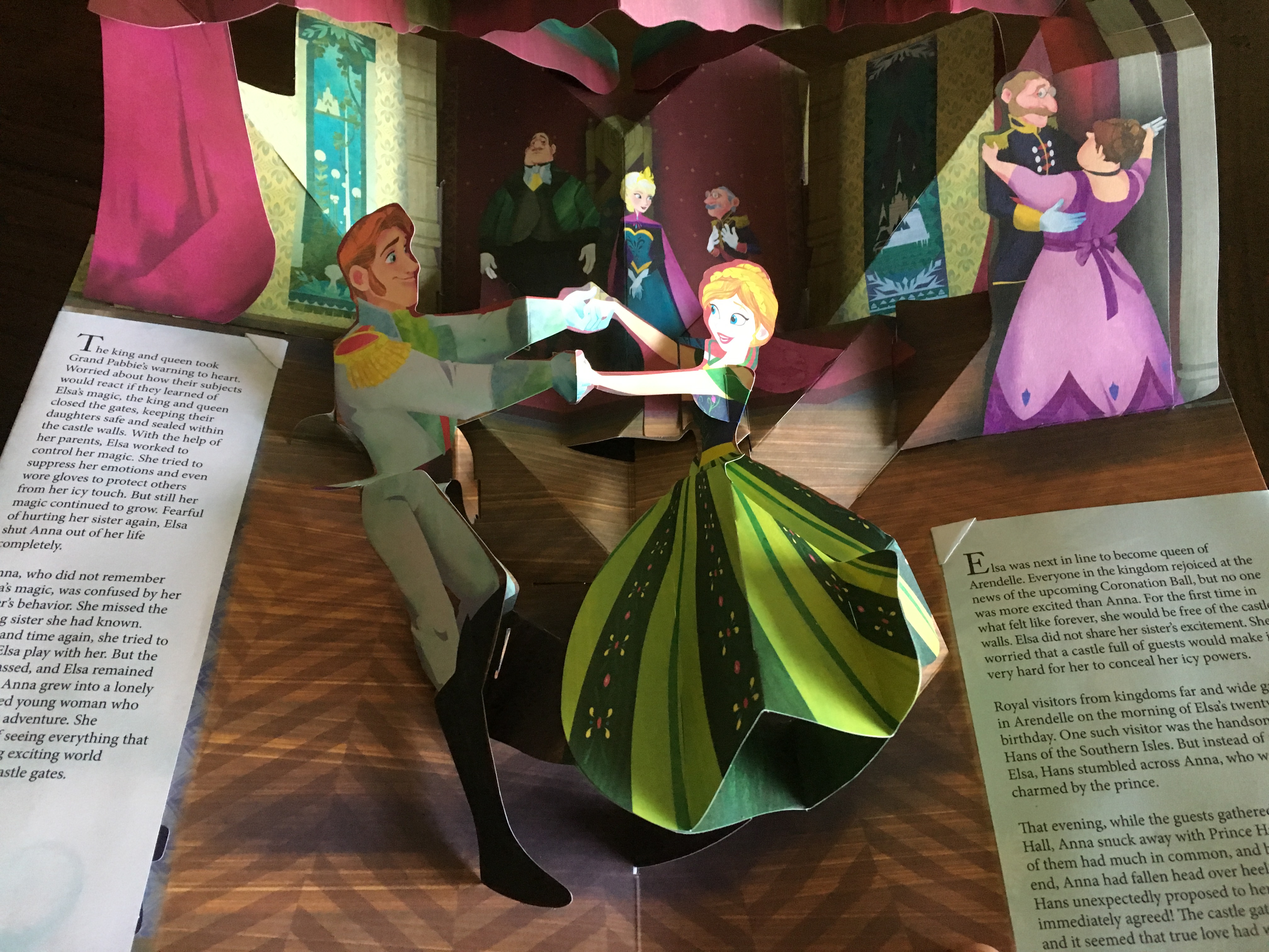 This is not just a pop-up book. This is magic come to life. It’s amazing to watch how these images unfold before you with no other mechanism than paper. No batteries. No computer chips. No holograms. Simply beautiful art and amazing paper engineering. Frozen: A Pop-Up Adventure isn’t just authored by Matthew Reinhardt but shaped and created by him also.