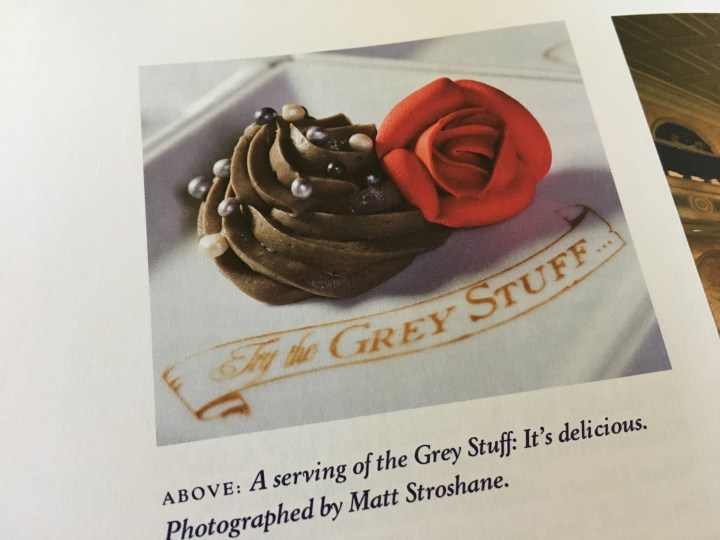 This book goes beyond even the films to delve into the Broadway musical and the experience in Walt Disney World. For the musical, Solomon describes the challenges to go from stage to screen and the adaptation and additional songs created for this new version. And for the theme parks, he talks about how Enchanted Tales With Belle developed into a personal experience beyond simply picture-taking and how the ambience and menus were developed for Gaston’s Tavern and the stunning Be Our Guest Restaurant. Personally, I loved the story about how “the Grey Stuff” was created to go from the screen onto a plate and how it went from being a secret item you could order to being on the menu itself due to overwhelming demand.