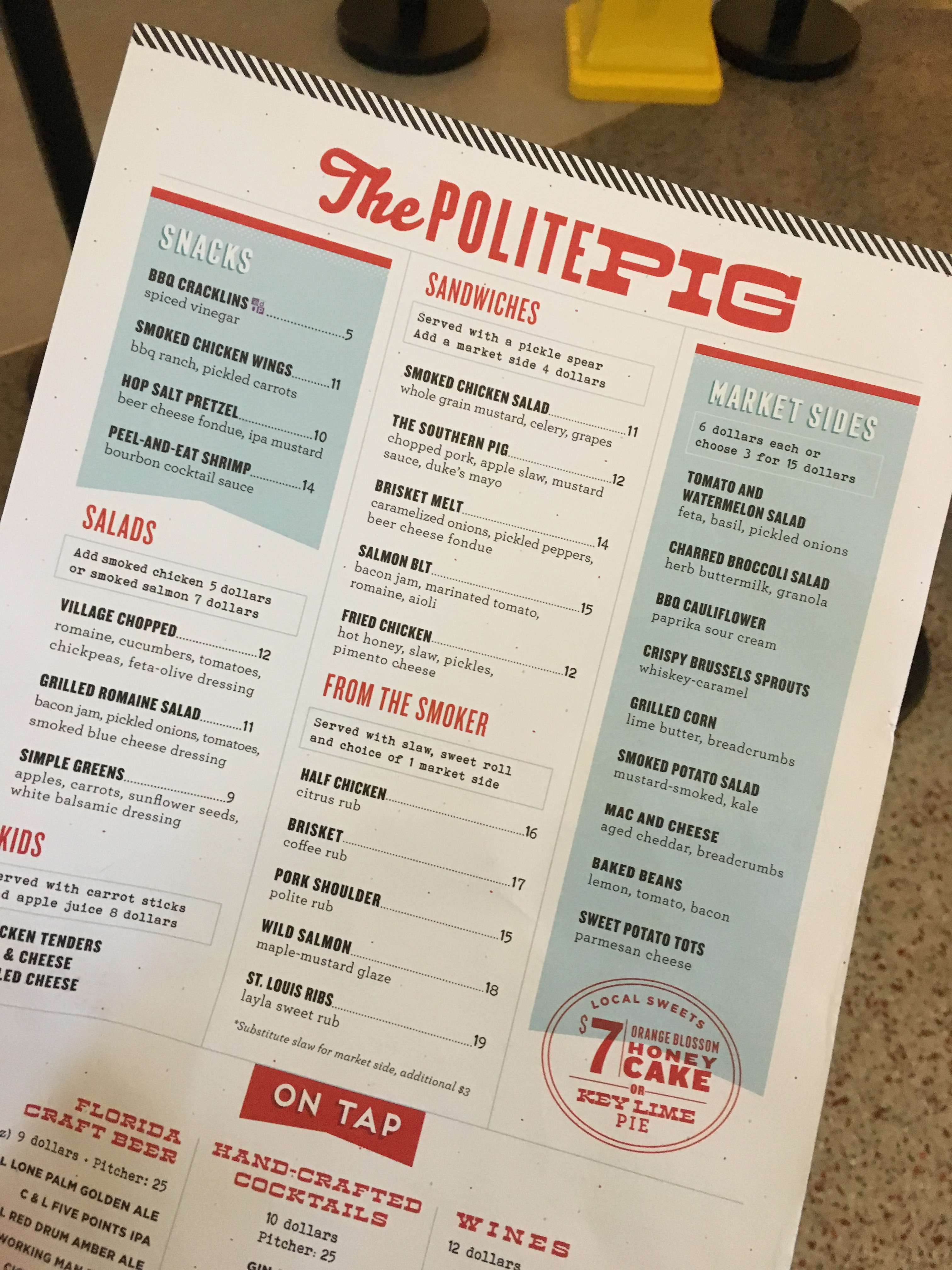 Having lived in Atlanta for nearly 10 years and traveled to places like Tennessee, South Carolina, Florida, Texas, and Louisiana, there is something special about a good Southern BBQ. Few places know how to capture that flavor but this one does. Talking to Sara who took my order, she told me that the owners of The Polite Pig were invited by Disney Springs to open a place here. Disney wanted someone who could really represent Florida to the world and they chose well.