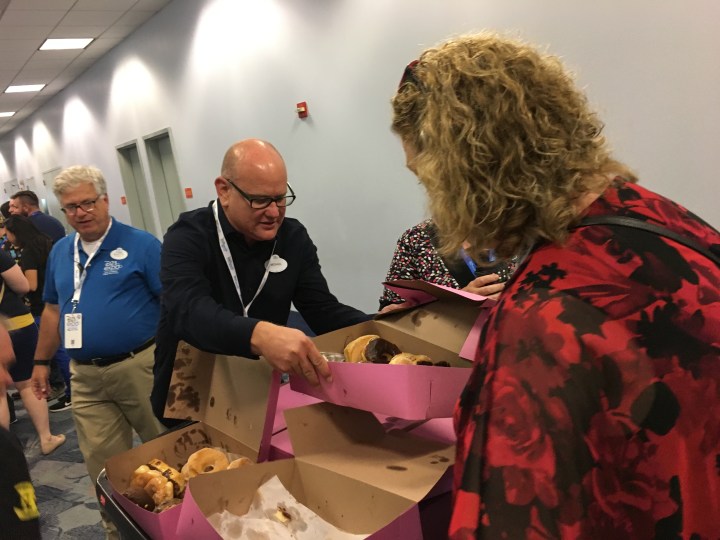 First things first. I got in line with the rest of the Sorcerers for our morning routine, except today it wasn’t routine. Michael and Laura who welcomed us the first day took time out of their busy scheduled to come down the line and pass out donuts to all of us. And yummy donuts, too. I thought that was especially thoughtful and a nice way to start our final day. I had wanted the Jada toys Sorcerer Mickey something fierce. It was only $30, limited to 750 pieces, and was completely made of die-cast metal with a special finish but they sold out the previous two days and weren’t open at all for the preview day (no one was except the big three). While I wanted the Rescue Ranger Tsum Tsum from the Disney Store, I also wanted to get to Mickey’s of Glendale for more pins. Turns out on Day 2 they didn’t switch out all the pins so I made the smart move by going to the Disney Store the day before. They did have some new pins, but not the wholesale change a cast member said would happen. But what about today? I decided to hit Jada first and then dash to MOG. But getting in early meant nothing to Jada as they were prohibited from selling before 9am. Still I was about 10th in line and thought I’d make it to MOG without too much delay. Turns out the Jada people were pretty slow. I got to MOG but they had about an hour wait. Not bad considering and MOG didn’t have wholesale changes this day either. I picked up a few items like the Shanghai Disneyland poster pins and a couple of the Chinese New Year pins and while beautiful, they were basically left overs from the main MOG store and nothing new. In hindsight, Disney Store would have been the smartest move, then to Jada, then maybe to MOG, but no regrets.
