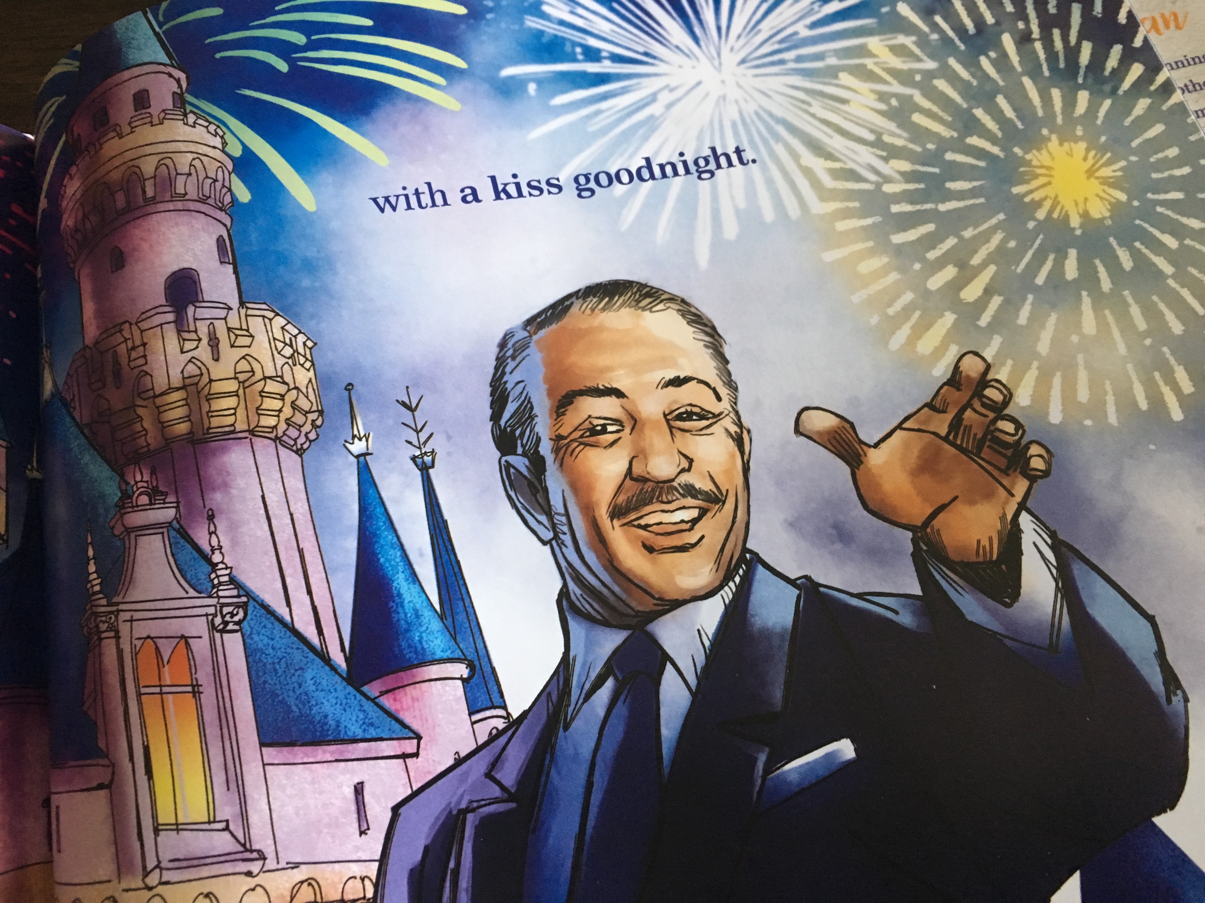 Walt is curiously never mentioned by name in the body of the story, but the boy is most certainly him. Walt’s distinctive look alone would give that away, but also Richard tells about the story’s inspiration in the opening introduction. It took something away from the narrative not to mention Walt by name. I felt like I was waiting for it as I turned every page, only to be denied. It also felt like the story was a few pages too long as if they asked Richard to add just a little bit more to the tale. Regardless of those two details, this book is a treasure – as much a piece of Disney history as the fireworks themselves. If you love Disney and the Disney theme parks, this book will only make you enjoy them more.