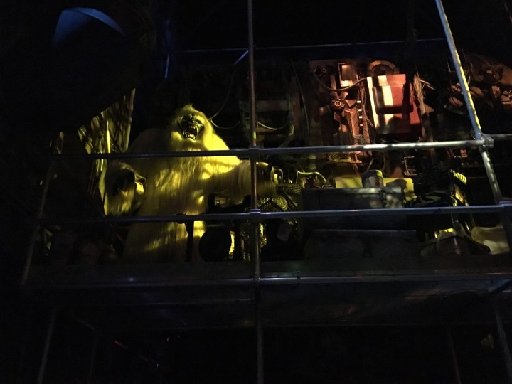 Since it is a museum featuring The Collector, it made sense that there would be artifacts from all over the galaxy – including Disneyland’s previous version of the Abominable Snowman from the Matterhorn! The set decoration for the ride was done well – with one exception. If guests are boarding a vehicle to tour The Collector’s exhibit, then why are we boarding in a scummy basement elevator? It made sense when it was Tower of Terror for guests to be led through a dark, dreary space and in fact it was weaved into the element of the story. But it doesn’t make sense for this ride. Shouldn’t there have been more artifacts and wonders to look at in this next section of the attraction?