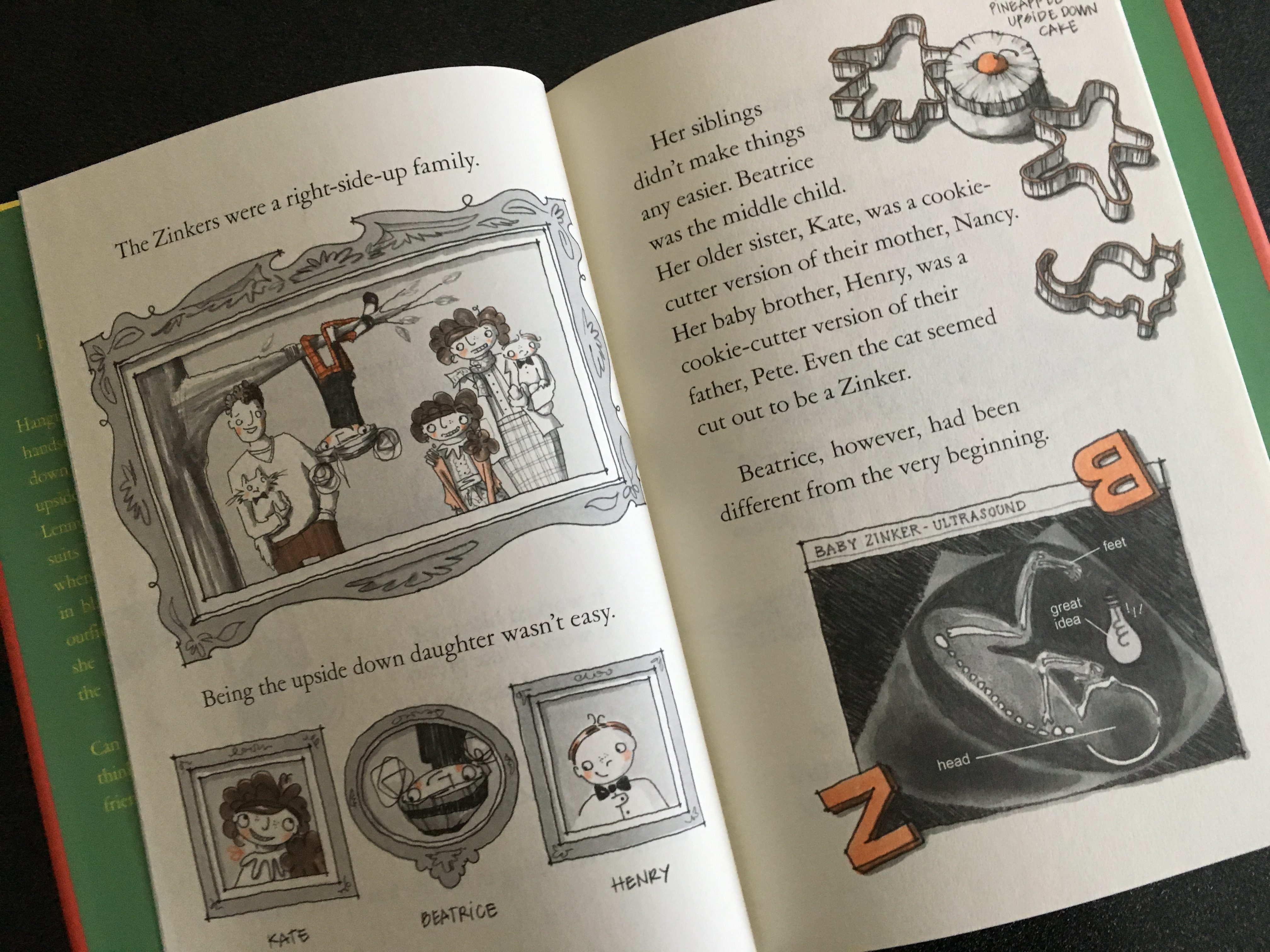 Maybe Shelley really understands Beatrice. Shelley is an upside-down thinker herself. Having spent ten years in architecture, but with a love of reading and writing, she decided to jump into the deep end of the pool and write (and draw) her own book. Beatrice Zinker is that first book. What I love about Shelley is that this isn’t a picture book with words. This is a book of words with pictures that happen to fit in the flow of the story. The pictures accentuate and compliment without dominating the book. What’s even more impressive is that Shelley does BOTH writing and drawing! Maybe that’s why it works so well.