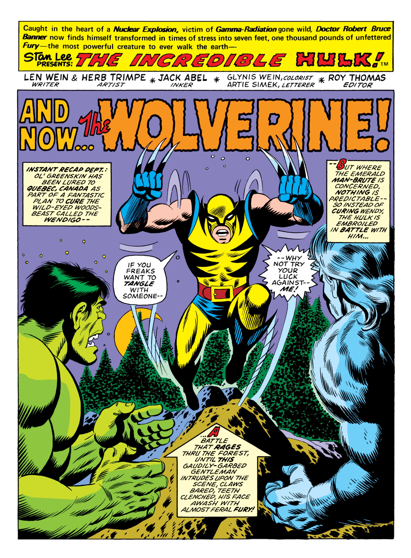 Incredible Hulk #181: The funny thing about this issue is that it’s importance is not really about the Hulk at all. It was in this issue that Wolverine was first introduced. Considered his first appearance, this is probably the most valuable of all Hulk comic books. Technically, Wolverine appeared in a panel in #180, but just as baseball doesn’t consider it your rookie year until you have a certain number of appearances, comics don’t consider it a 1st appearance until a character is featured in the book for more than a cameo. Like Thing and Thor, Wolverine would over the years be both opponent and ally of the Hulk and it was this book that first featured him.