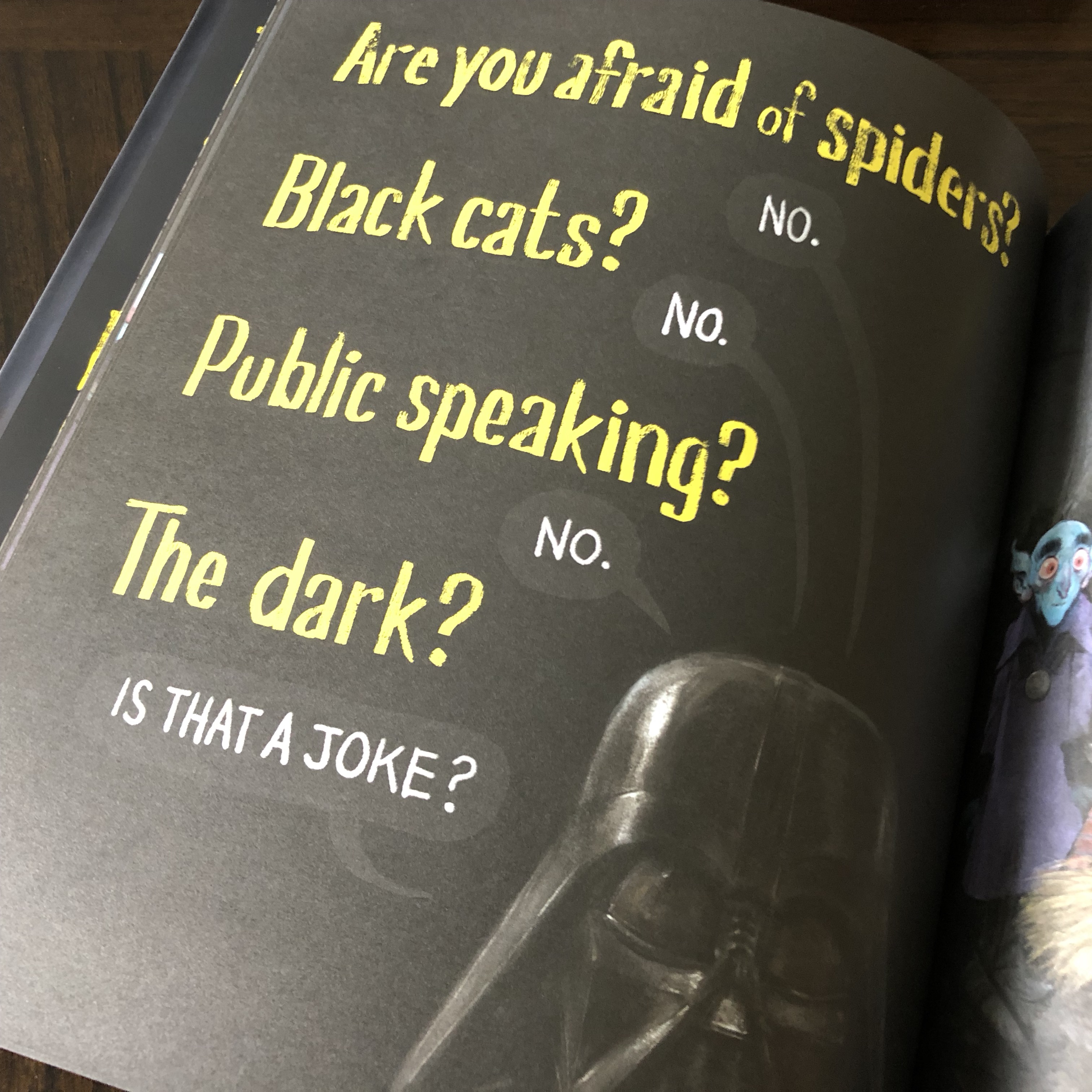 Adam Rex authors a very interactive book between the reader and Darth Vader. The book breaks the fourth wall and the narrator interacts directly with the Dark Lord of the Sith. At one point, Vader also interacts with the reader which is done in a charming and clever way. The story is about the narrator’s efforts to get Darth Vader to admit that there are things that scare him. But Vader is seemingly impervious to fear. Werewolves, vampires, and other monsters that might scare the average person pose no threat to the Dark Lord of the Sith. But there is something that does frighten Darth…and I’ll let you find that out for yourself.