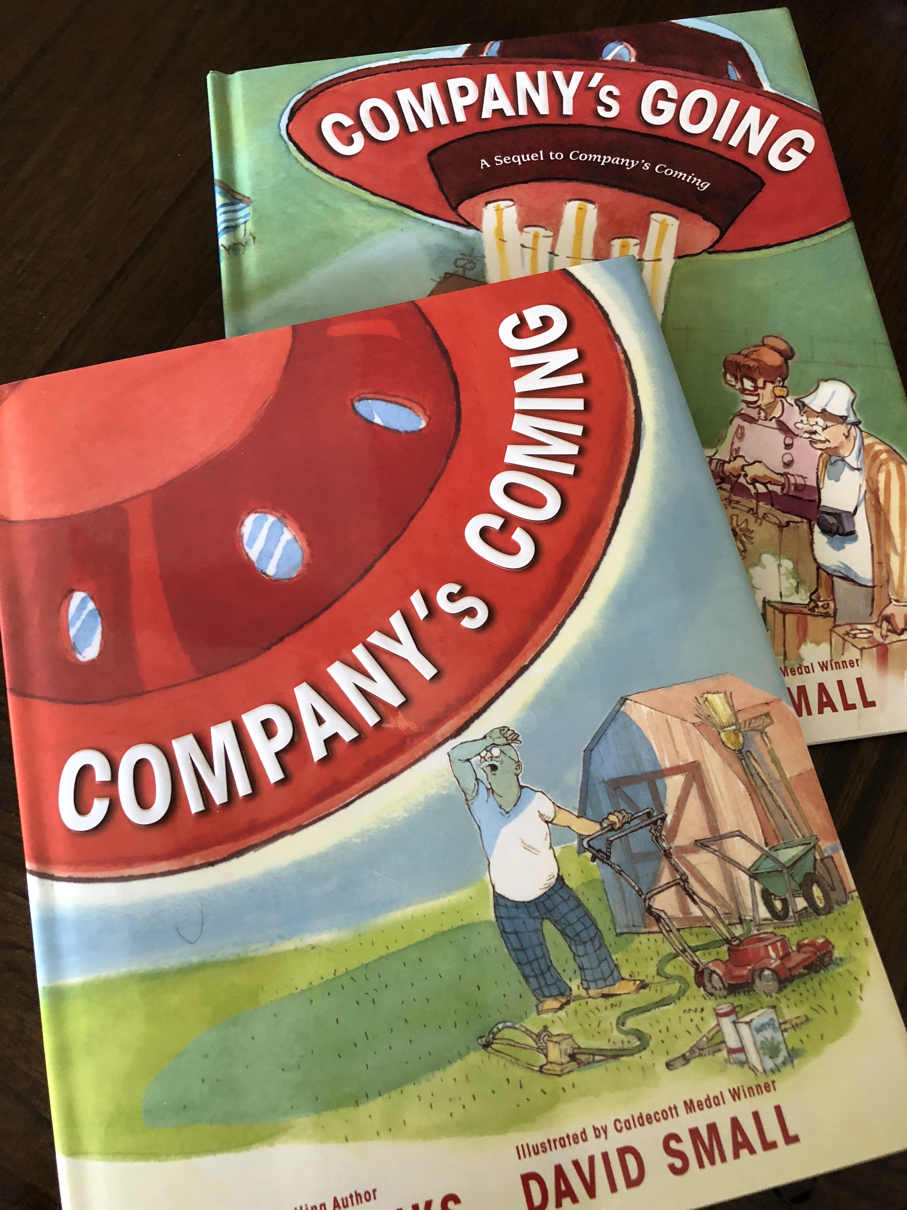 New York Times best-selling author, Arthur Yorinks wrote a children’s book called Company’s Coming which is not strange in itself. Nor is it strange that the company referred to are space aliens. What’s strange is that a SECOND book, a sequel if you will, is coming out the same day! It turns out these are re-releases that have been out of print for a while and are coming back into stores – hence the same release date. Both books are chapters of the same story, but also can be read as stand-alone tales. However if you read Company’s Going without reading Company’s Coming you’ll be missing something.