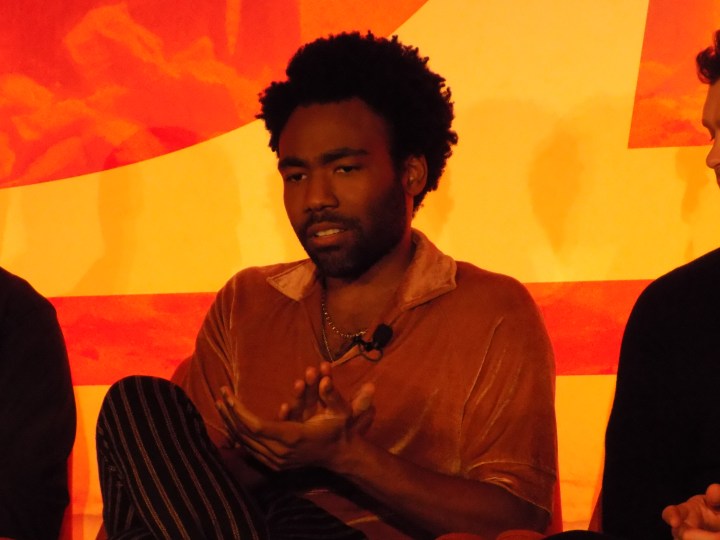 Donald Glover, Jr. does an amazing job playing Han’s competitor, equal, and rival Lando Calrissian. In the original films we only get a glimpse into the relationship between these two men, but Solo: A Star Wars Story gets to delve in so much deeper. Donald’s portrayal of Lando is suave, nuanced, and complicated. Much like the world in which Solo is surrounded by. In the press conference, Donald talked about that: