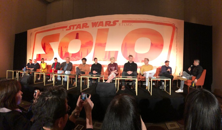 He even got the blessing of Harrison Ford himself. Alden Ehrenreich who plays the titular character relates a story about meeting with Solo himself. “Rght before we started shooting, I wanted to talk to Harrison, just to kind of pay respect and have him give us his blessings for the film and so we had lunch two years ago or something, and he was really encouraging and really supportive and then we went off, shot the film and everything like that. And today, I was doing an interview and they were talking about, you know, is there anything else you’d like to ask him? I was like, ‘Well, I don’t know,’ and they’re like, ‘Well, you’ll have your chance’ — and he was behind me. He came and he’s so effusive about the movie. It meant so much to me and I know for Ron and Kathy and everybody. It’s just such a huge deal to have him really genuinely love it, really genuinely enjoy the film, and it meant a lot to me that he took the time to come out here and do that.”