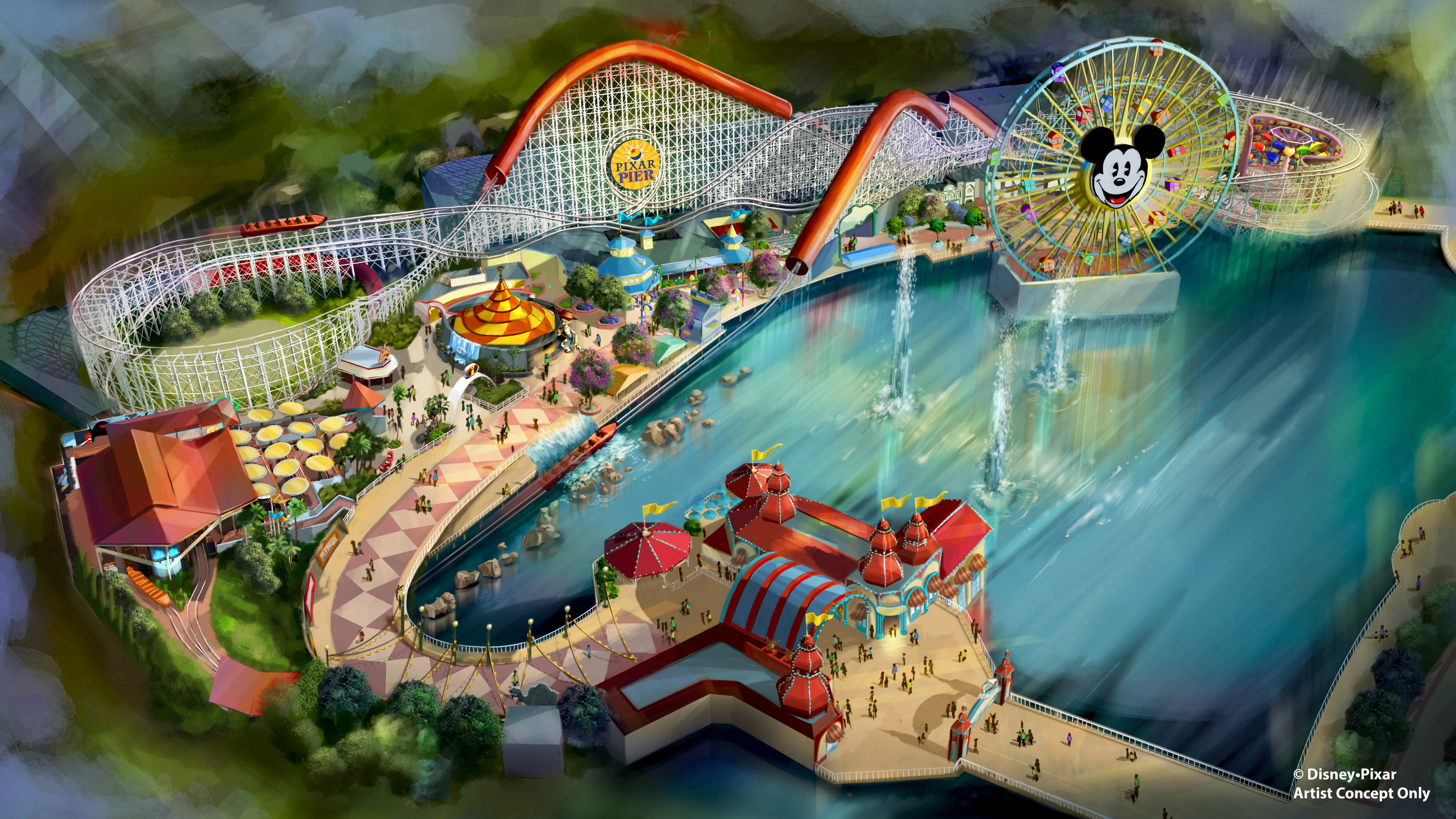 PIXAR PIER (ANAHEIM, Calif.) –Summer 2018 will bring a transformed land when Pixar Pier opens for guests to experience at Disney California Adventure park, featuring the new Incredicoaster inspired by Disney•Pixar’s “The Incredibles.” This artist concept illustrates the four new neighborhoods that will represent beloved Pixar stories and the newly themed attractions that will be found throughout the permanent land of Pixar Pier. (Disney•Pixar)