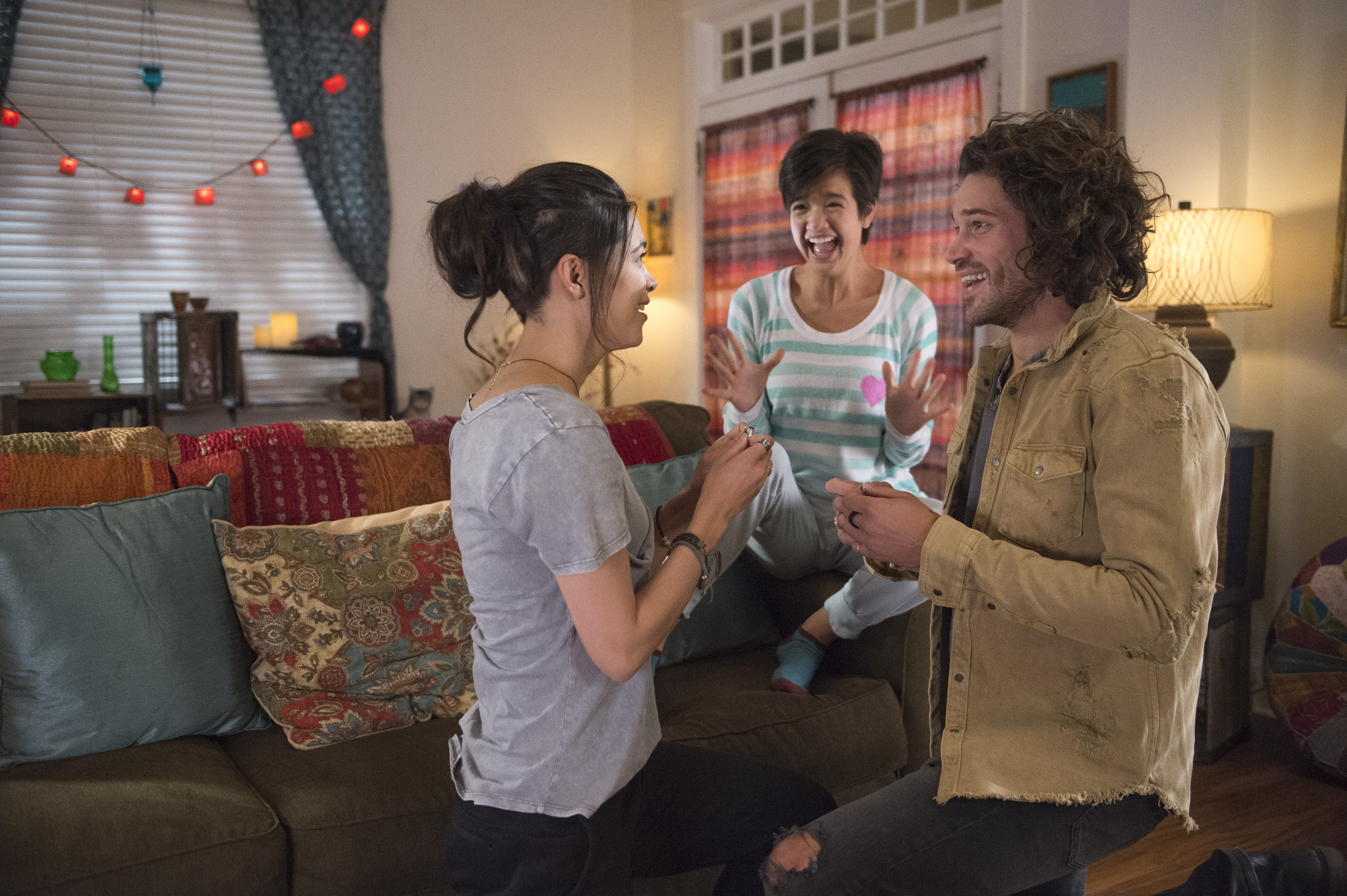 Which leads to the biggest cliffhanger from Season 2 – what happened to the proposal? Bowie comes back from his tour and we find out Andi and Bex admitted to their planned proposal, and Bowie says “yes!” But Bex sends Bowie on his dream tour anyway. She doesn’t want him to have any regrets about pursuing his dreams. Bowie comes back though because his life is with these two great loves of his life. Both Bowie and Bex propose at the same time and Andi’s parents