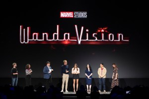 MATT SHAKMAN, JAC SCHAEFFER, KEVIN FEIGE (PRESIDENT, MARVEL STUDIOS), PAUL BETTANY, ELIZABETH OLSEN, KAT DENNINGS, RANDALL PARK, KATHRYN HAHN