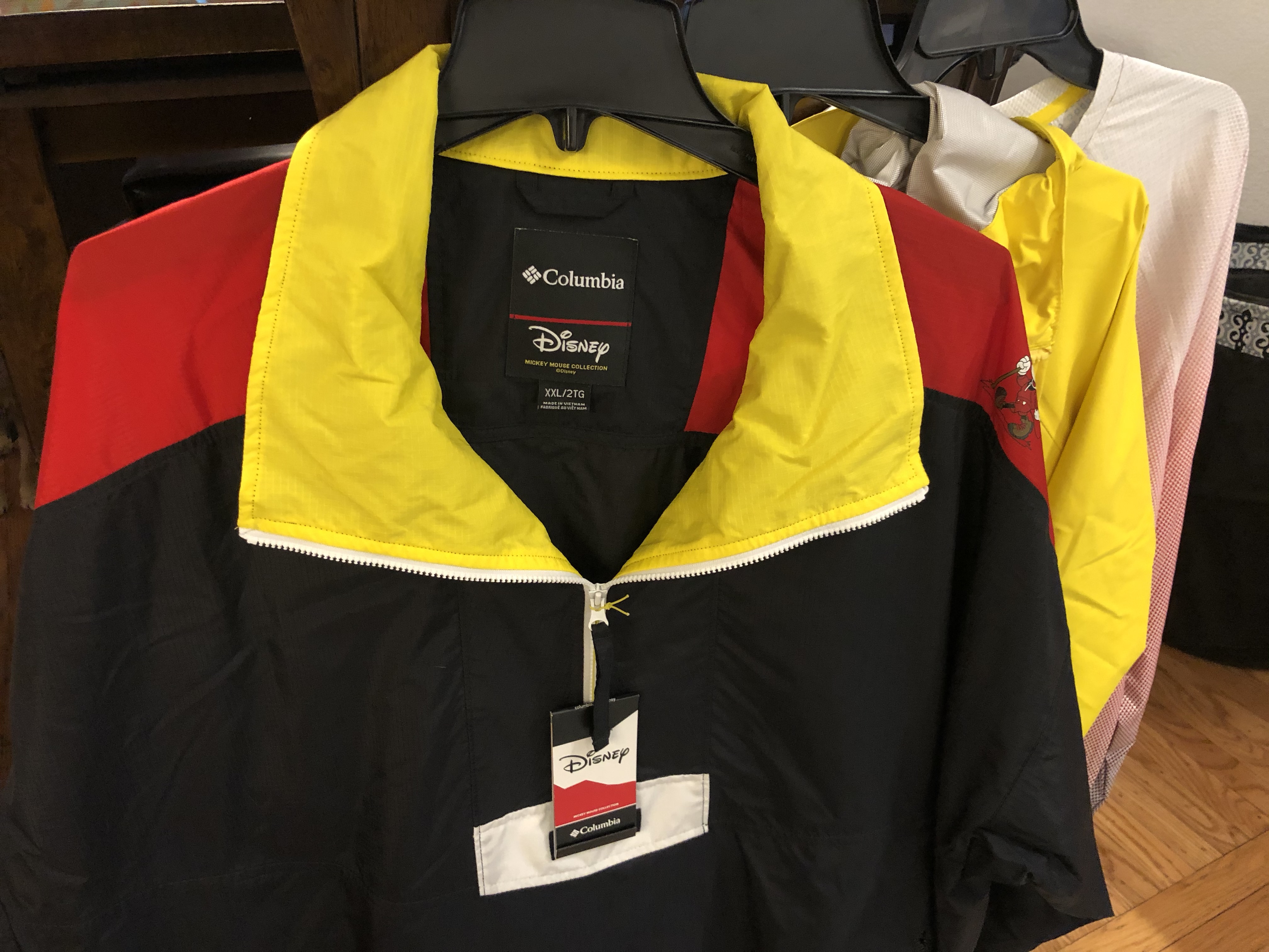 Columbia sent me a few of these awesome pieces of clothing to wear and I loved them! The Sun Deflector Top had a weird reflective surface that reminded me of alligator skin, but it’s super lightweight and would be wonderful for running, hiking, or wearing in the pool. The sun reflective technology helps the wearer from the harmful effects of the sun’s rays (rated SPF 50), but it also is has Omni-Wick and Omni-Freeze to pull away sweat and keep you cool when it does get hot. I did get to try the Disney Ibex Jacket also in bright yellow which my daughter noted makes it look like Pooh Bear! It is adorable and I love the Mickey shaped ventilation to help keep you cool while the Omni-Tech material keeps you dry. But my favorite has to be the Disney Santa Ana Anorak. It’s classy, cool, and so lightweight. Not quite as waterproof as the Omni-Tech material of the Ibex Jacket, but it’s so comfortable and can be folded into it’s own front pocket! Pretty awesome.